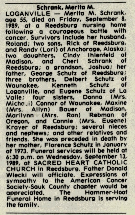 - [S180] Wisconsin Sauk Co Cemetery Records Vol 6, pg 96.