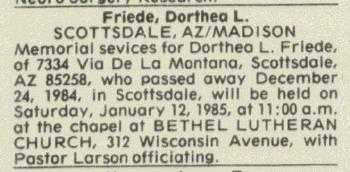 | Father* | August Friede b. 1 Apr 1908, d. 3 Dec 1971 |