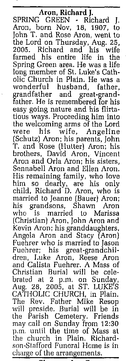 | Father* | John T. Aron b. 29 Apr 1872, d. 15 Sep 1913 |