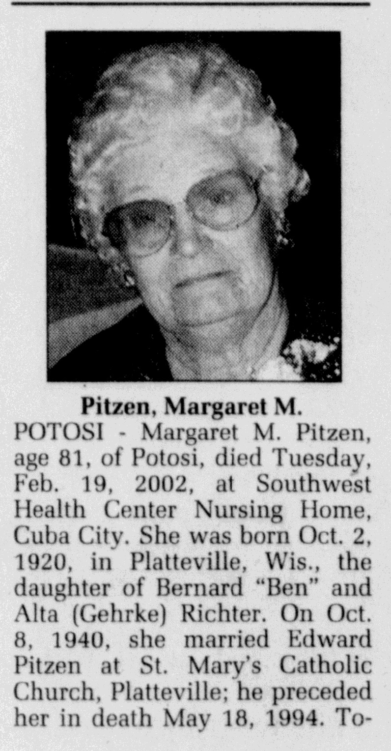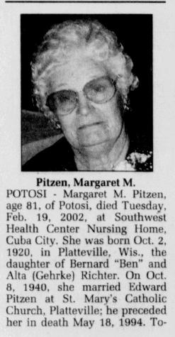 - [S250] U.S. Federal Census 1930 U.S. Federal Census, by Ancestry.com, Year: 1930; Census Place: Platteville, Grant, Wisconsin; Roll: 2574; Page: 3B; Enumeration District: 40; Image: 608.0; FHL microfilm: 2342308.
