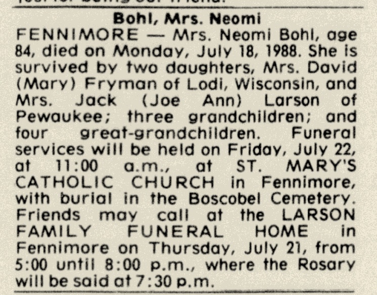Children of Neomi Richard and Joseph Bohl