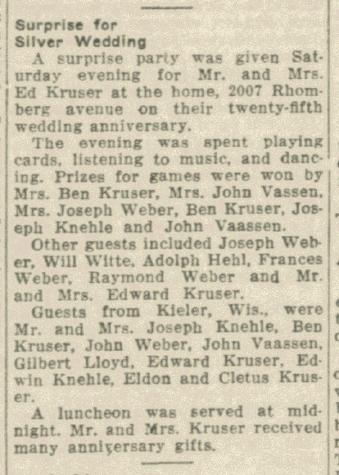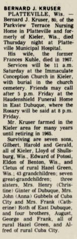 - Bernard J. Kruser b. Aug 1894, d. Jul 1975