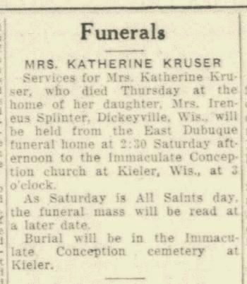 - Elizabeth Kruser b. 4 Mar 1898, d. 28 Apr 1974