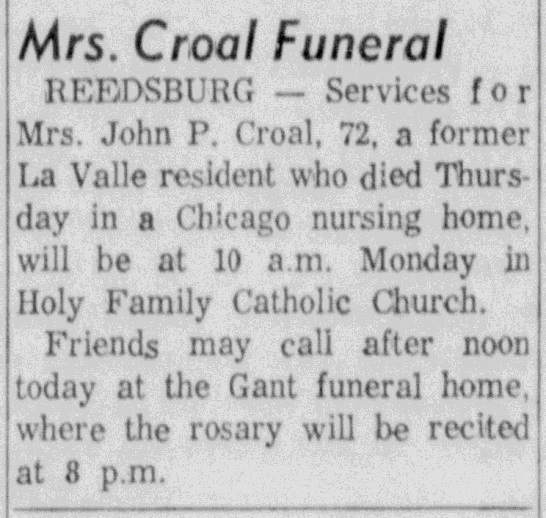 - [S273] Wisconsin Sauk County, Wisconsin Cemetery Records, page 74.