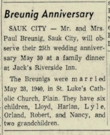- Orland P. Breunig b. 10 Dec 1944, d. 18 May 2003