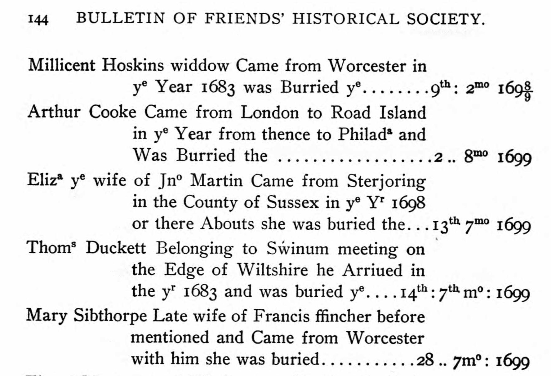 - Sarah Fincher b. 1683, d. 3 Dec 1742
