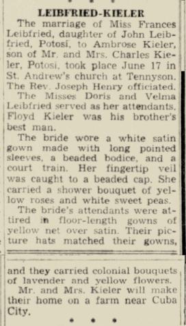 Children of Frances Evelyn Leibfried and Ambrose Martin Kieler