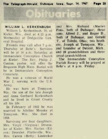 - Gerald Theodore Kerkenbush b. 2 Jun 1931, d. 26 Apr 2004