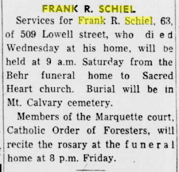- Marcella Schiel b. 3 Jul 1914, d. 3 Aug 1976