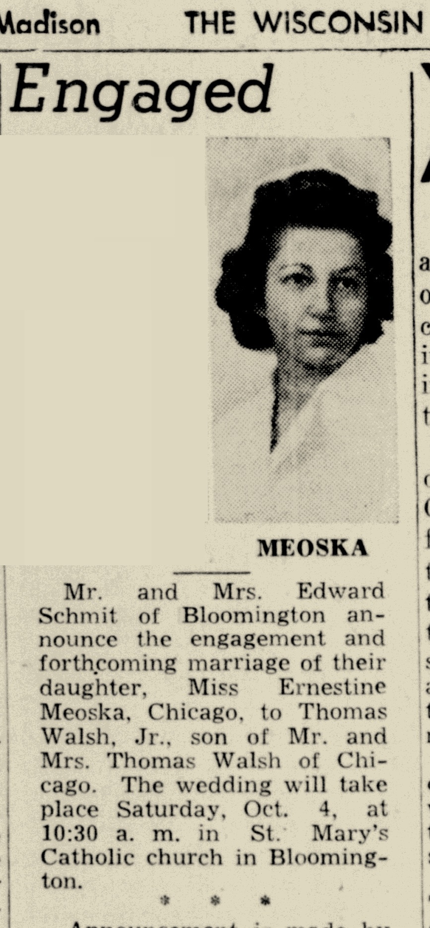 Child of Thomas James Walsh Jr. and Ernestine Mary Meoska