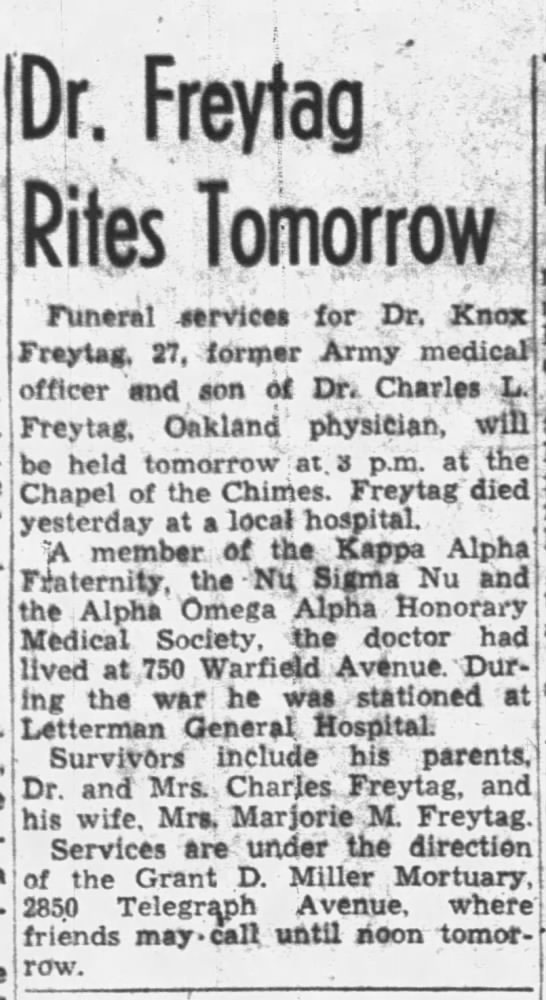 - Dr. Knox Rose Freytag b. 19 Apr 1921, d. 5 May 1948