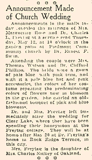 | Step-father* | Dr. Charles Louis Freytag b. 30 Dec 1894, d. 6 Apr 1964 |