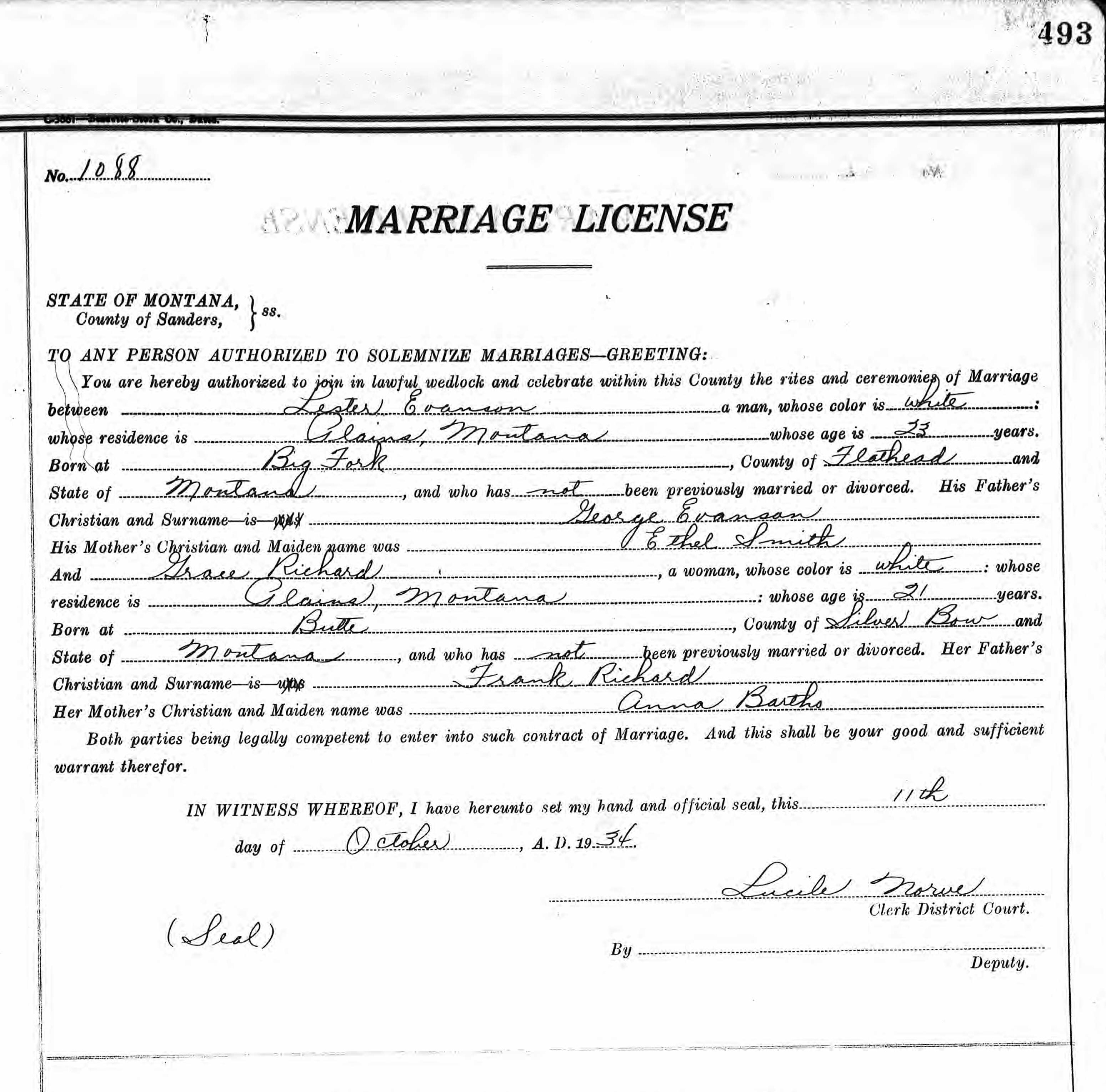 Child of Lester Wesley Evanson and Grace Frances Richard