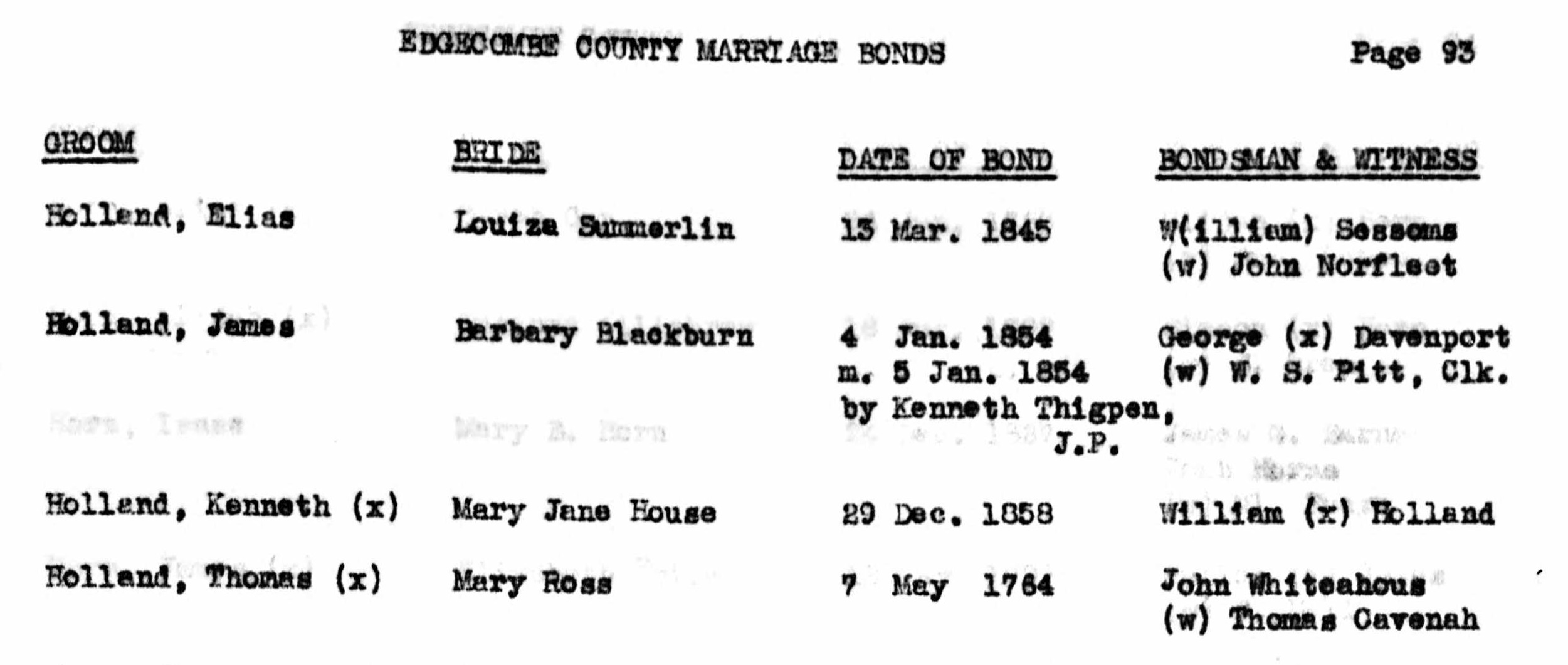 - Lewis Holland Sr. b. 1806, d. Jan 1870