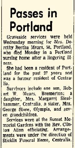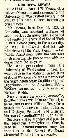 - Robert Wallace Mears+ b. 10 Dec 1923, d. 1 Dec 1972