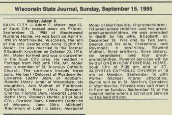- George Maier b. 10 Mar 1916, d. 12 Feb 1972