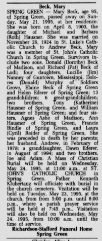 - Dolores A. Beck b. c 1933, d. bt 1998 - 2017
