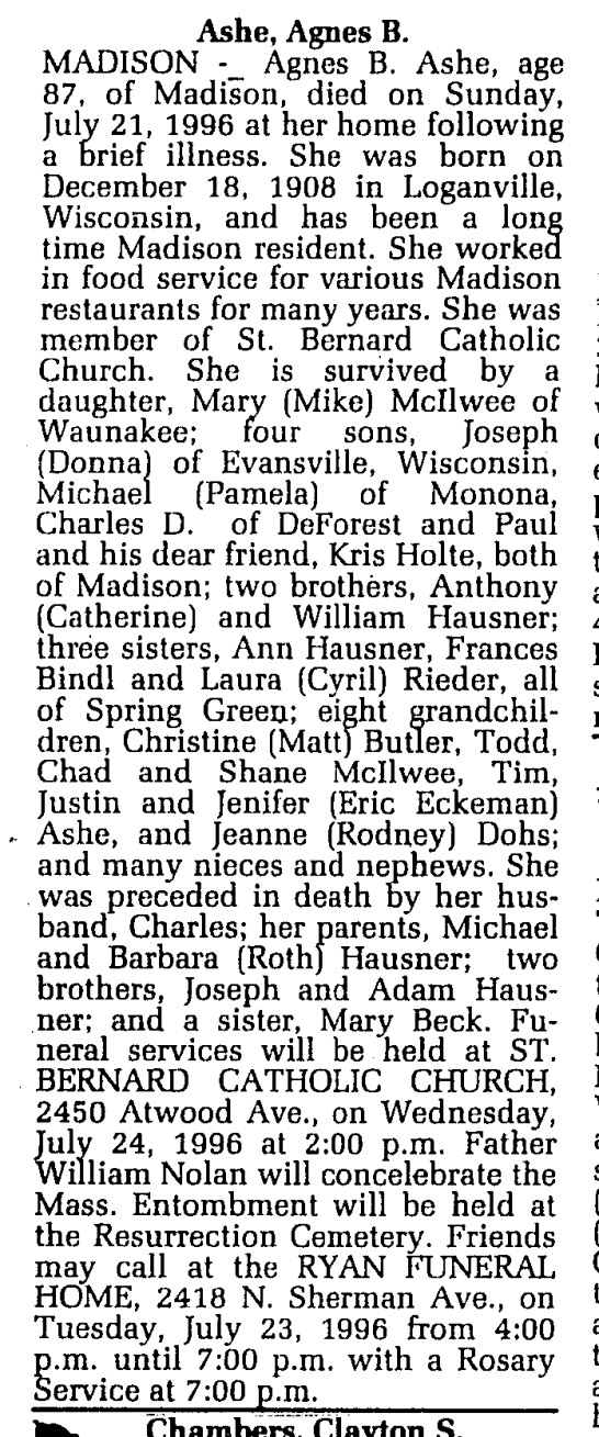 | Father* | Michael Hausner b. c 1866, d. b 1940 |