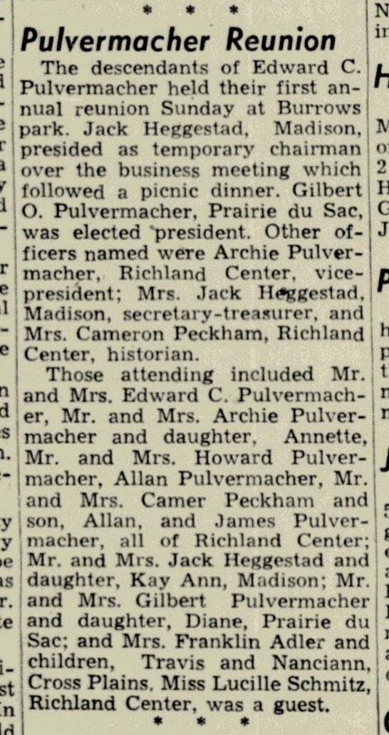 - Howard L. Pulvermacher b. 23 Jun 1919, d. 23 Oct 1988