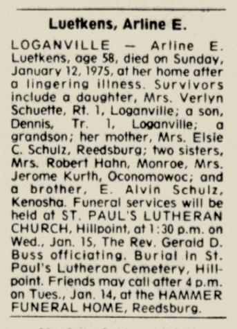 Child of Emil H. W. Luetkens and Arline E. Schulz