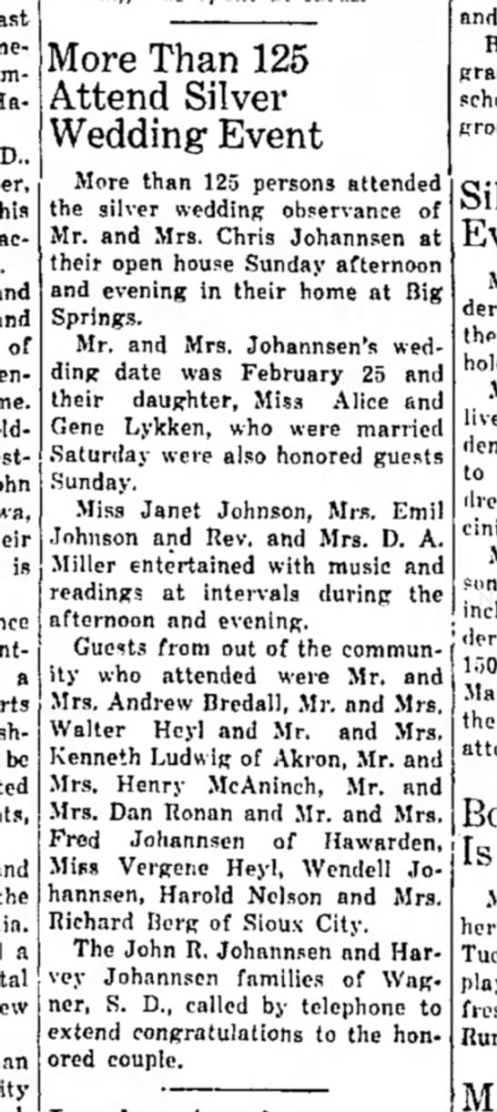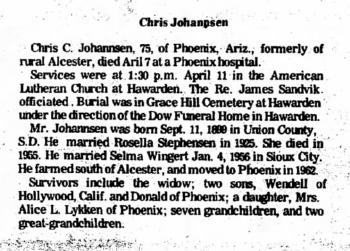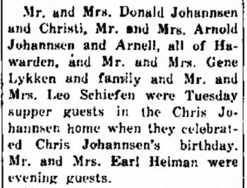 | Father* | Chris C. Johannsen b. 11 Sep 1899, d. 7 Apr 1975 |
