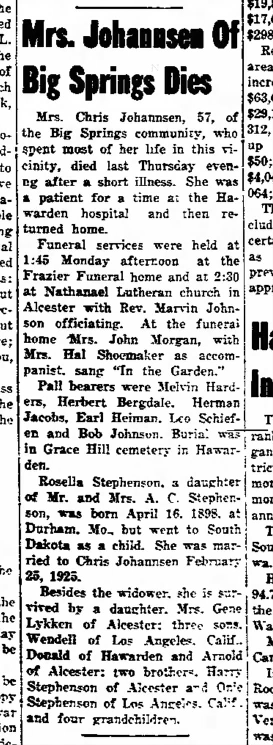 Children of Rosella Stephenson and Chris C. Johannsen