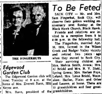 - Harlan Fingerhut b. 11 Apr 1923, d. 27 Sep 1999