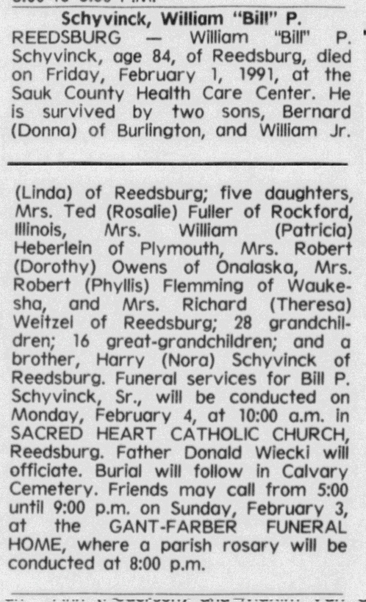 - William Schyvinck Jr. b. 12 Oct 1940, d. 29 Dec 1994