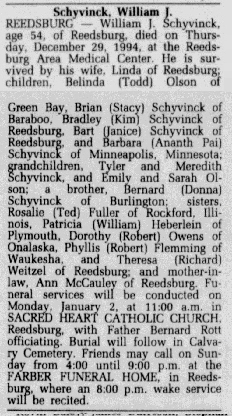 | Father* | William P. Schyvinck b. 4 Nov 1906, d. 1 Feb 1991 |