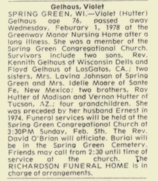- Hazel Gelhaus b. 1911, d. 26 Dec 1972