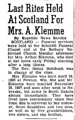 - Herman Albert Klemme b. 10 Jul 1887, d. Aug 1958