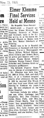- Elmer Klemme+ b. 14 Aug 1908, d. 21 Nov 1966