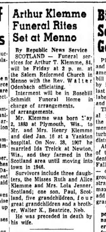 - Arthur Theodore Klemme+ b. 2 May 1883, d. 16 Jan 1968