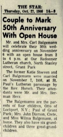 | Father* | Carl Balgemann b. 3 Sep 1889, d. Mar 1971 |