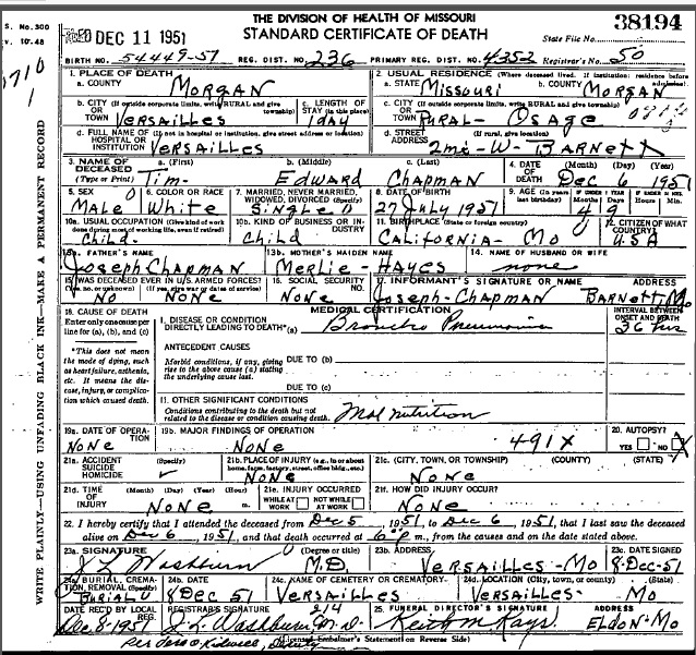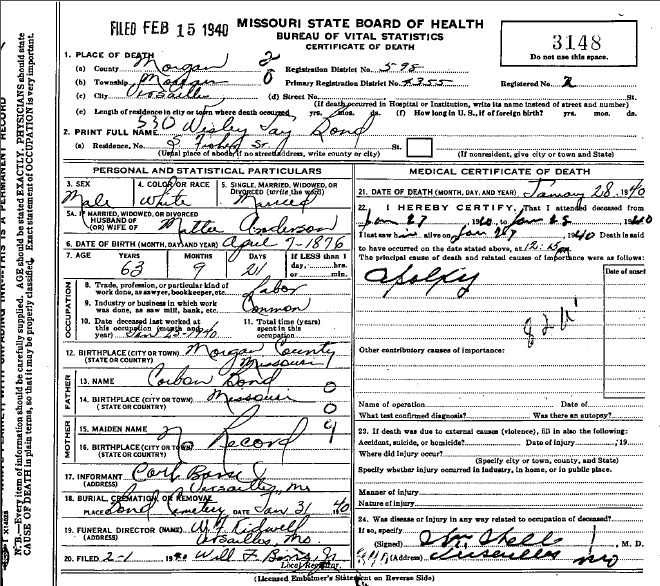 - [S357] Missouri Death Certificates, 1910 – 1955 (published).