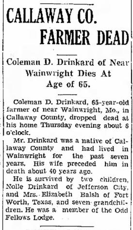 - Reynolds Drinkard b. 20 Dec 1892, d. 7 Sep 1945