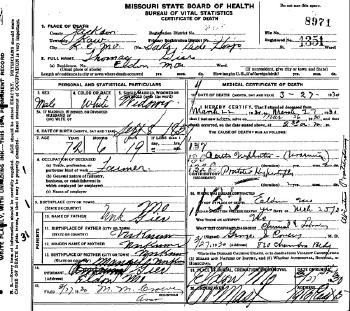 - [S243] U.S. Federal Census 1920 U.S. Federal Census, by Ancestry.com, Year: 1920; Census Place: Franklin, Miller, Missouri; Roll: T625_935; Page: 1B; Enumeration District: 93.