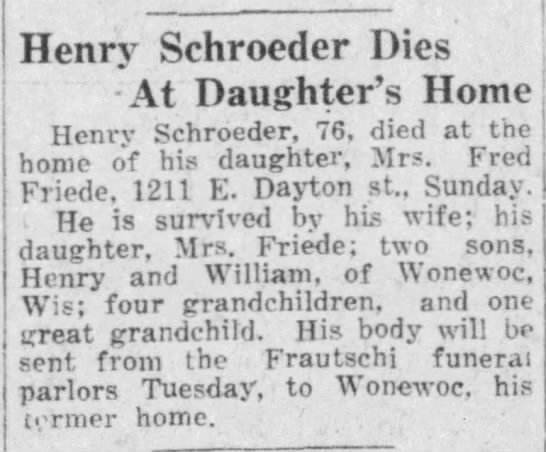 - William H. Schroeder b. Apr 1877, d. a 1959