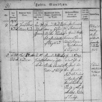 - [S383] The Danish National Archives; Church Records, Jens Christian Nielsen birth record, Page 31 Image 19, Karup sogn (Viborg amt) Kontraministerialbog (1814 - 2002) Denmark.
