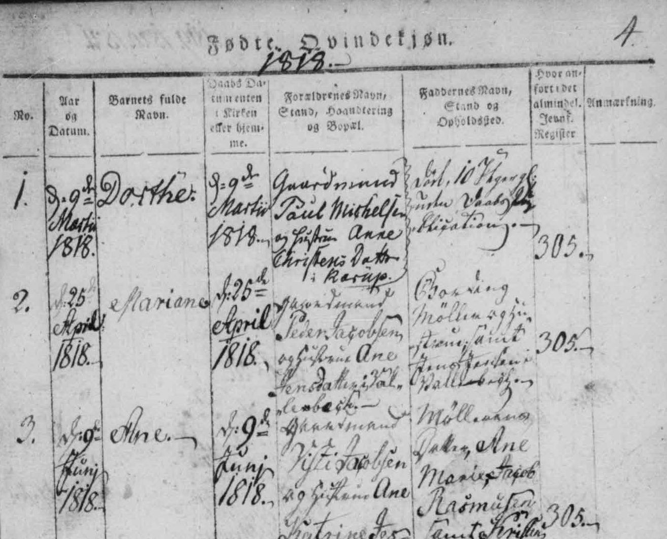 - [S383] The Danish National Archives; Church Records, Mariane Pedersdatter birth record - 25 Apr 1818 - Karup, Lysgaard, Viborg, Denmark.