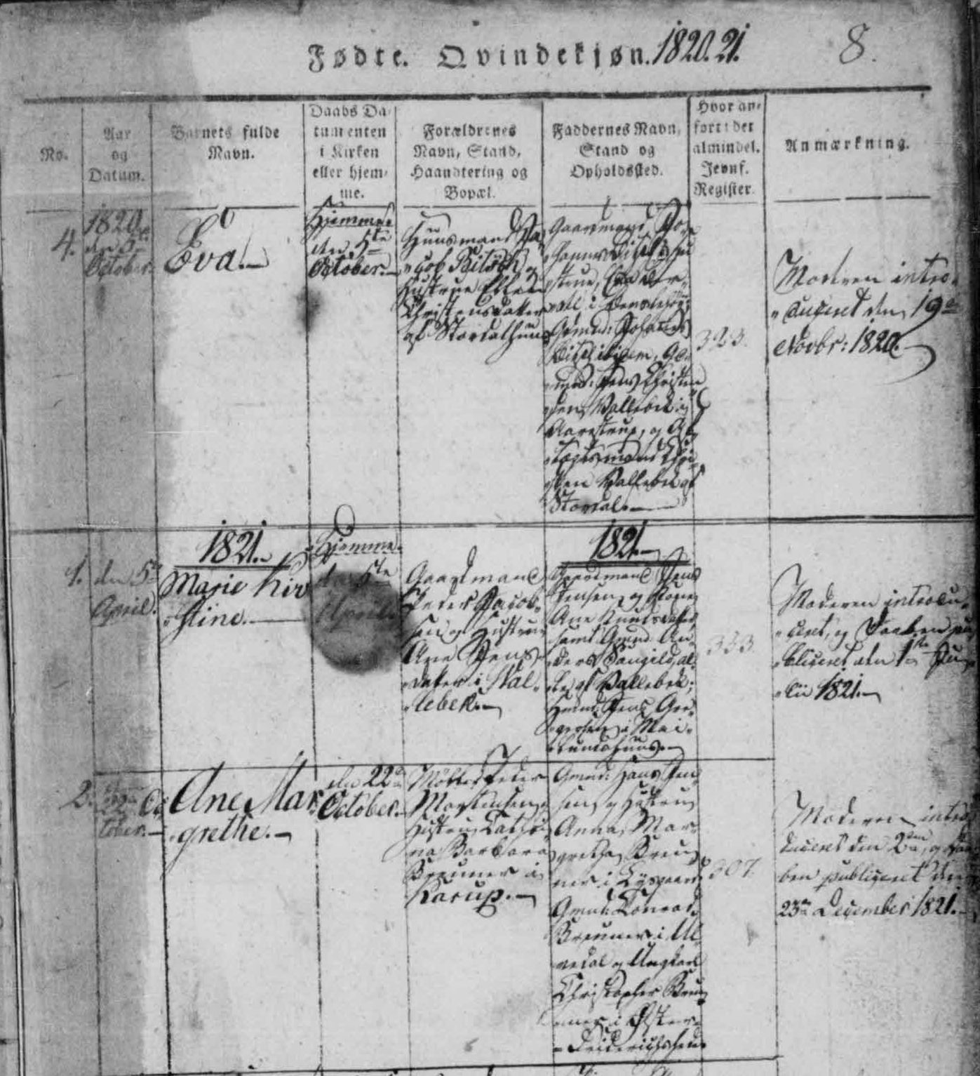 F, b. 7 February 1820, d. before 1823