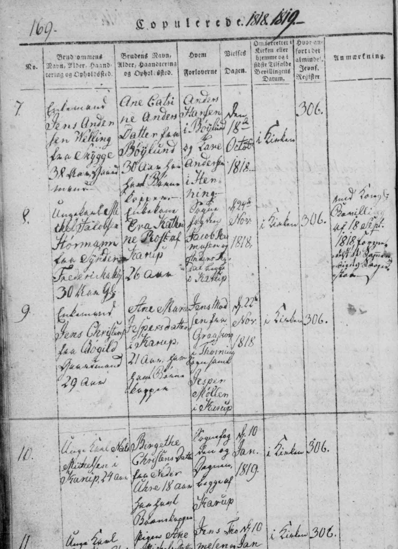 - [S383] The Danish National Archives; Church Records, Niels Michelsen - Birgethe Christendatter marriage record, Page 169 Image 55, Karup sogn (Viborg amt) Kontraministerialbog (1814 - 2002) Denmark.
