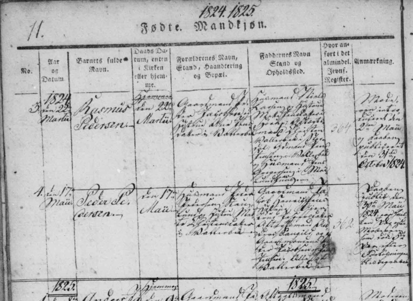 - [S383] The Danish National Archives; Church Records, Rasmus Pedersen birth record - 22 Mar 1824 - Karup, Lysgaard, Viborg, Denmark.