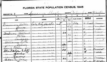 - [S373] U.S. Federal Census 1940 U.S. Federal Census, by Ancestry.com, Year: 1940; Census Place: Columbia, Florida; Roll: T627_579; Page: 8A; Enumeration District: 12-3.