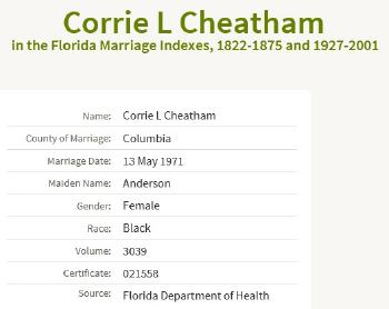 - [S247] U.S. Federal Census 1870 U.S. Federal Census, by Ancestry.com, Year: 1870; Census Place: Columbia, Florida; Roll: M593_128; Page: 351A; Image: 709; Family History Library Film: 545627.