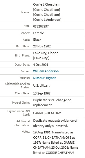 - Corrie Bryant b. Jan 1897