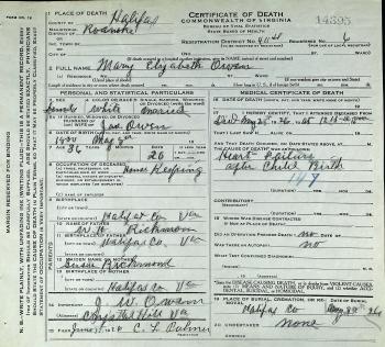 - [S243] U.S. Federal Census 1920 U.S. Federal Census, by Ancestry.com, Year: 1920; Census Place: Roanoke, Halifax, Virginia; Roll: T625_1891; Page: 25A; Enumeration District: 100; Image: 392.