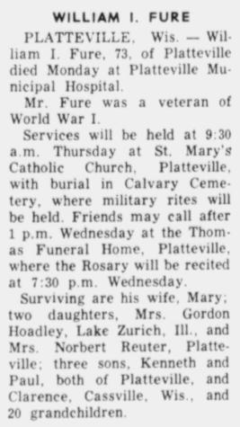 | Father* | William I. Fure b. c 1893, d. Dec 1966 |