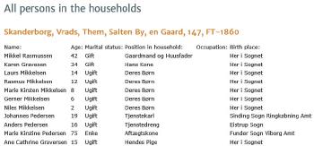 - [S384] The Danish National Archives; Census Records, Skanderborg, Vrads, Them, Salten By, en Gaard, 147, FT-1860.
