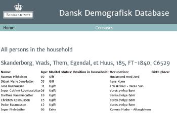 - [S384] The Danish National Archives; Census Records, Skanderborg, Vrads, Them, Egendal, et Huus, 185, FT-1840, C6529.
